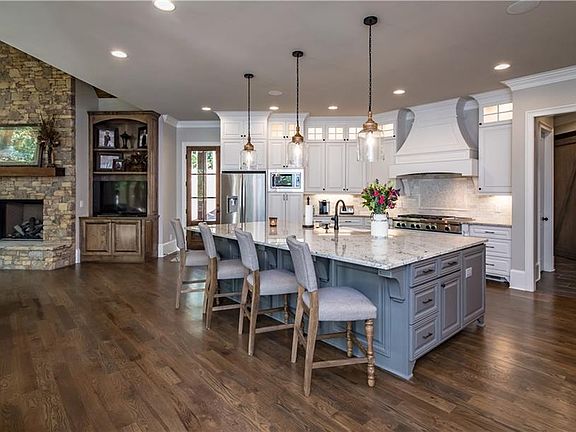 - Kitchen Features: Breakfast Bar, View to Family Room, Stone Counters, Kitchen Island, Pantry Walk-In, Breakfast Room, Keeping Room, Cabinets White