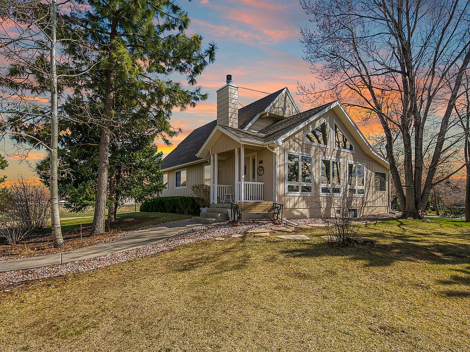 This exquisite acreage in coveted foothills of West Loveland, oh-so close to Lon Hagler Reservior, has the feel of serenity and privacy but is only minutes from Loveland businesses. Bring your horses, watch the wildlife, create your garden, & nurture the lifestyle of your dreams on this serene 5 acres. The home's walls of windows bring the outdoors into your living room, the cozy loft is a retreat all on its own, and the sun porch thrives with the southern exposure. A finished basement has an exterior entrance, and the 968 sq. ft. attached garage (already prepped for heat) has room for all the toys. Pole barn is great for storage and/or livestock. No HOA. RARE WATER RIGHTS: 1/2 share of South Side Ditch rights and 1/2 share of of Southside Reservoir convey. Refrigerator, washer & dryer are all included.