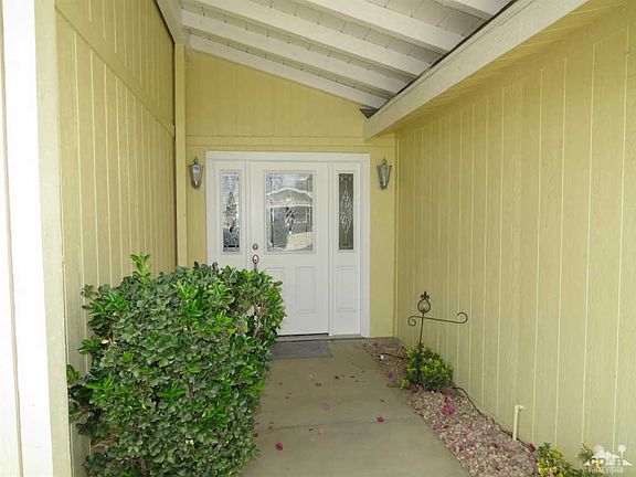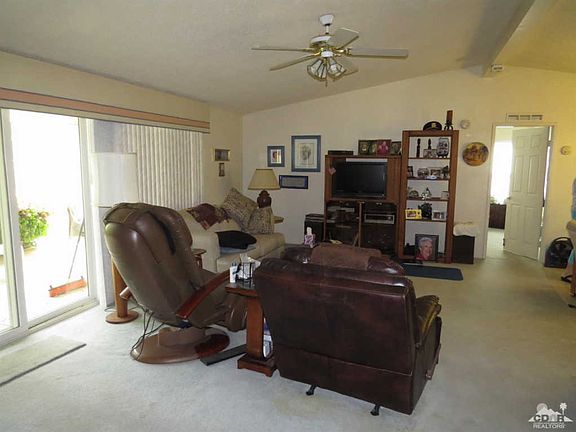 This immaculate two bedroom two bathroom home welcomes you through a beautiful leaded glass door entry that provides light and interest as it directs you into the living room or upgraded kitchen. The upgraded kitchen features lovely, dark cabinets and light, Caesar Stone counters top. Dual pane Sliders in the living room and dining area overlook two separate lovely, covered patios. The large master suite and guest bedroom, each with an adjoining bathroom are at opposite ends of the home giving maximum privacy. Dual pane windows help keep home quiet and energy efficient. The home is located just off the main street in Ivey Ranch CC & GC, a gated, senior community of manufactured homes integrated with a 9 hole, SCGA rated, Semi-private golf course, Pro-shop, Driving Range, 4 community pools, 2 community spas, Club house and The Ciao Room seasonal restaurant. In Ivey Ranch you own the land.