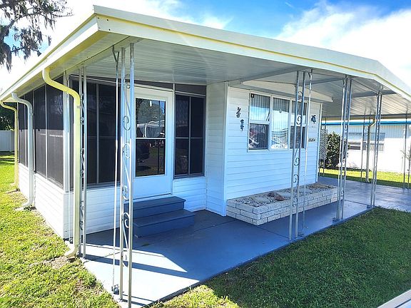 Nice 2 bedroom, 1 bath mobile with Florida room. Inside laundry. Home has been updated including new vinyl plank flooring. AC/Heat pump unit is 7 years old, but only used 3 years. Includes 2 storage sheds. Move in ready. Seller reserves some items in the home. Located in a 55+ community. You own your land. HOA fees of $600/year. Clubhouse and pool access. Buyer must be approved by the park.