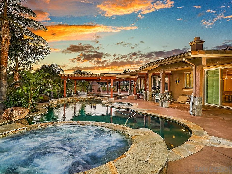 Looking for an extraordinary property on a 1.42 acre lot? Look no further than this stunning 4BR, 3.5BA, 3car garage, 3,315 sf single story home, plus office & outdoor bathroom for pool guests make this the definition of a dream home. Luxurious master suite w oversized closet & bath. Incredible backyard retreat surrounded by mature lush tropical landscaping is the perfect place to entertain - pebble bottom pool, spa, outdoor kitchen area, swim up bar, & Bullet BBQ. Solar for house is paid. Mountain views.