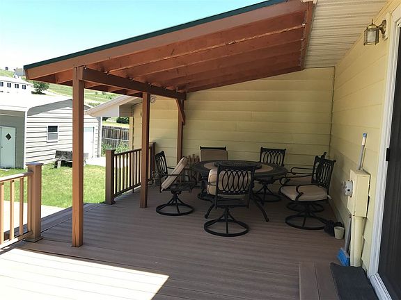 Listed by Krysti Schulz, Real Estate Center of Sturgis. For those wanting a nice home on a large lot on the edge of town, this is the one!! This is a very well maintained home on a beautiful lot that is nearly a half acre. The main level features 3 bedrooms and 1 bath. There is a 4th bedroom downstairs with a 2nd bath complete with a jetted tub. The home has both an attached 2 car garage plus a 2nd workshop/storage building that is 20x21. In addition, 2 storage sheds are included. The back yard is fenced and very lovely. The rear deck is oversized and features both a wood section as well as a composite (maintenance free) section. It is partially covered and quite inviting. The home has an electric heat pump as well as central air. The basement has a beautiful stone lined wall behind the pellet stove. The home has steel siding and a newer roof. Come take a look today! **Notice the cheap county taxes***