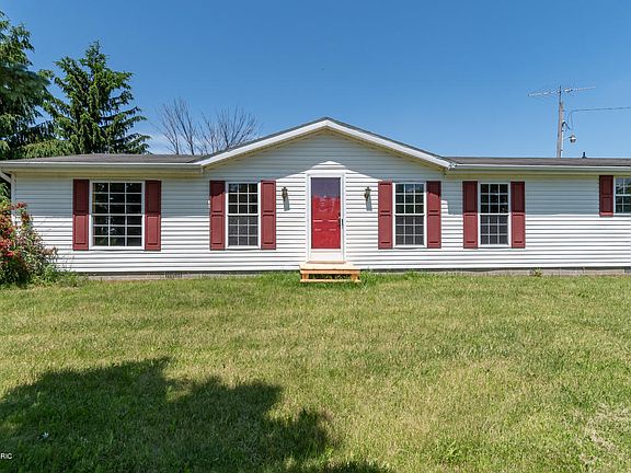 One of a Kind every mans dream home with 7 acres 48x72 20ft ceiling pole barn and stocked pond. Also a barn for horse or cow with fenced area. Home offers 4 Bedrooms 2 Bath with 20x22 extra family room. Office area between house and Two extra large garage. You wont want to wait to see this home.