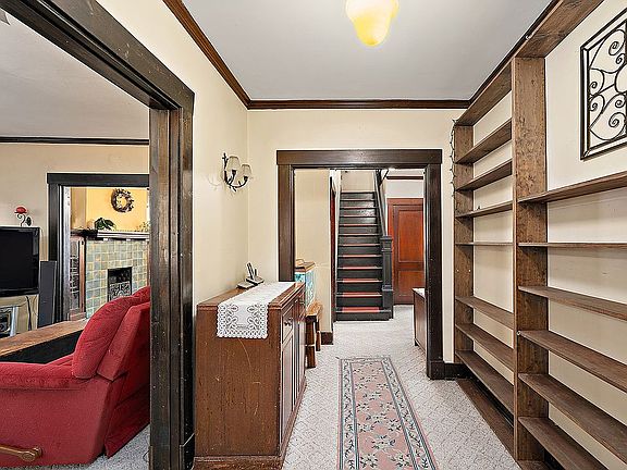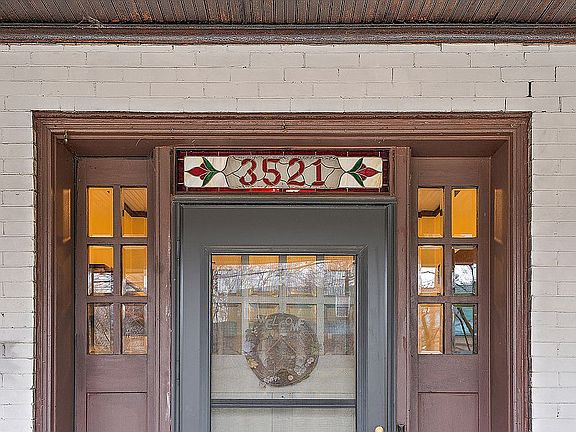 Classic brick Prairie Foursquare with charming details, located within walking distance of the Brighton Heights shops. A stained-glass transom with the address numbers adorns the entrance to the foyer. The private office, once used as the waiting room for the doctor that lived in the home, is accessed right off the main entry. The main foyer is adorned with built-in bookshelves and the original wood trim. The spacious living room features a gas fireplace with Craftsman-style mantel and tile. The fleur de lis accents in the fireplace boxes symbolize the life, perfection, and light that this home once exuded. Dual built-ins frame the tiled decorative fireplace in the dining room. A massive first-floor bathroom and an efficient kitchen complete the first floor. Upstairs are four sizeable bedrooms, a classical preserved full bath with stained glass windows, and a flex space that could be used as an office or den. Two bedrooms have walk-in closets. Large level fenced yard with 2 car garage