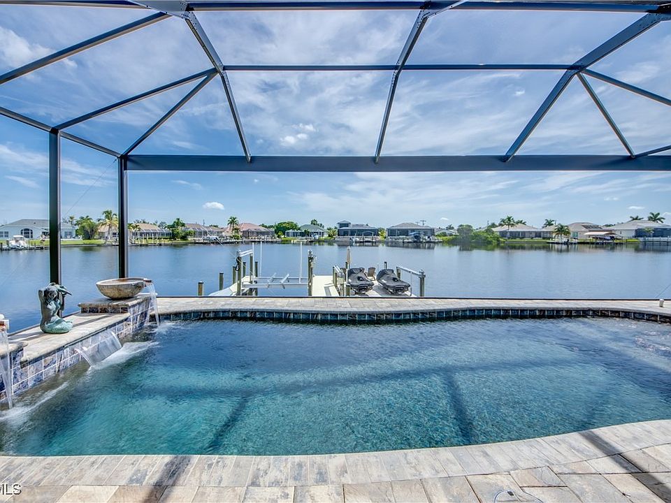ULTIMATE BOATERS PARADISE WITH NEW LARGE 2022 HOME! On Rare Saltwater CEITUS LAKE, where DOLPHINS, MANATEE'S, TARPON, and many other Marine Wildlife play in your backyard. Open Water is a short scenic 15 min. Boat Ride to Gulf of Mexico, with access to the Islands and beaches. The Dock is equipped with a 10,000 pound Boat Lift for up to 30ft boat, separate Double Jet Ski Platform with its' own lift for easy access in and out of water and large seating area. The Platform keeps the Jet Ski's out of water for easy rinsing/boarding. Fish off your Dock! High End Custom Builder Personal Residence on Saltwater Lake and a Boaters Dream! Large 4/2 with 2548 Living! Modern Design and modern finishes are well thought out with no expense spared. Home was built 2022 to withstand the Florida Extreme Climate with high Elevations, Hurricane Windows and Doors. Foam Insulation for Maximum Air Tight Seal and savings on A/C & Heat. Designed for viewing the Water from most rooms! Sunrises and Sunsets cannot be beat over the Lake! HEATED SALTWATER POOL with Elevated Pool area with Waterfalls, Sun Shelf, 2 pumps, and Separate Therapeutic Jacuzzi Spa for Ultimate Relaxation! Grand Entry with Estate Double Iron Doors into Foyer and you will need to stop and catch your breath. The 8 ft. High Impact Glass Sliders, the TV Wall with Fireplace/Mantle and Tile from Floor to Ceiling, the Exposed Beams with Coffered Ceilings, Large plank porcelain tile floors, views to pool and water that are never ending. The Chef's kitchen boasts: High End Black Stainless Steel Appliances with Wall Oven, Wall Microwave, Induction Range/Oven all with Convection Cooking, Pot Filler, Range Hood, Custom Double solid Granite sink, 4 door Refrigerator, Walk in Pantry, Backsplash. White/Gray Color Palette for cabinets. Extra large Inside Laundry room, Oversized 3 car garage with $4,000 worth of Custom Cabinets/2 large Shelves. Over garage has a 12X14 floored area w/bright lights for storage. Foam Insulated Garage Door for highest efficiency, 8' Solid soundproof Doors, Coffered Ceilings in Master Bedroom, Additional Hot Water Heater 2024 in Master Bath for Instant Heat, 90 degree panorama windows in Dinette, Water/Electric on every wall outside, Elevated TV/Electric outlets, Paver Circular Driveway, Paver Pool Deck with concrete underlay, wood shelves in closets, dedicated plug for Generator outside, tile has laminate underlay to prevent cracking, whole house surge protector, Large Custom Baseboards, 14' Ceilings with 10' Ceilings in bedrooms and Ring Doorbell w/Ring Security Lights on 4 corners of home. Grand Atrium Entry, Pie shaped Lot with 100' of seawall on Lake. City Water/Sewer with small balance. Just off Pine Island Rd Corridor and Burnt Store Road. Walk to Joe Stonis Park across street. Publix/Walgreens/Restaurants at end of street. Close to new 7 Islands Entertainment District coming soon. This is Ultimate Florida Living! Virtual Tour has 95 photos & Floorplan don't miss it!