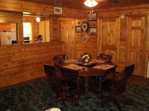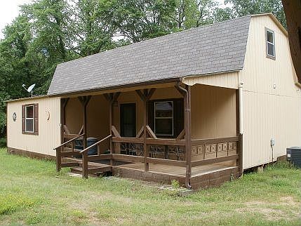 This neat 2 bedroom 2 bathroom home sits on 12 acres and would make perfect weekend getaway or hunting cabin. The lower level has open kitchen, living and dining room concept, bedroom, bathroom and large utility room. The master bedroom with full bathroom is located upstairs. Very rustic with wood walls and ceiling. Tile floors. Storage buildings. The property has a water holding tank with a pump and fire hose. An additional well and septic tank is located in the back of the property so would make another great homesite. Close to area lakes and state parks. Creek on property which makes great watering place for all the wildlife. Lots of deer and hogs roam the property.