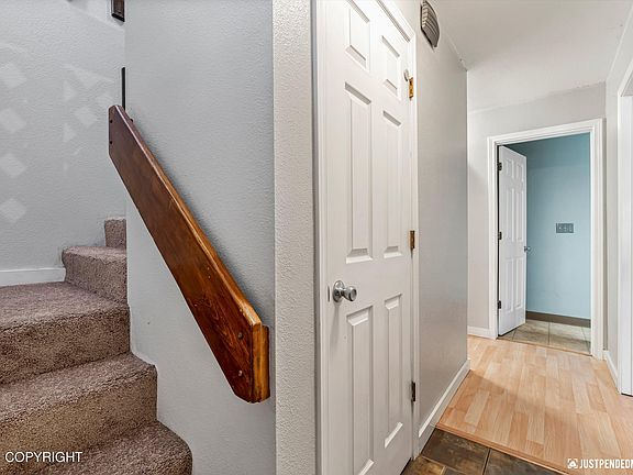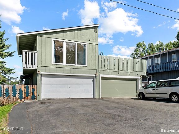 Main living space upstairs including dining area, kitchen with brand new built-in microwave & pantry closet, & large primary suite with walk-in closet, private bath, double vanities, & it's own deck. Downstairs has two good-sized bedrooms & interior access to the two-car garage. All centrally located near the U-Med district Chester Creek bike trail with it's own private yard and a shed.