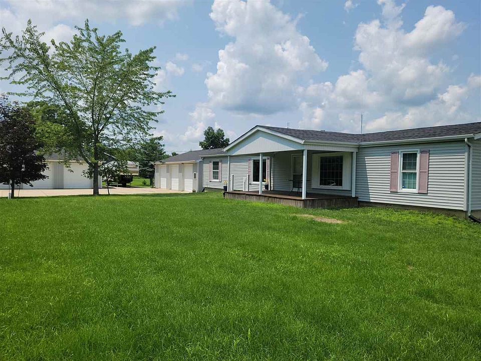 Come see this quiet peaceful setting! This well maintained manufactured 3 bedroom and 2 full bath sits on almost 8 acres and has 3 ponds to enjoy the wildlife, and wow is there a lot of wildlife to enjoy! The air pump for the pond stays. There is a covered front porch with a ceiling fan and 2 additional decks in the back overlooking the ponds to enjoy that morning sunrise. Also TWO 30 x 40 finished pole barns with 10 ft ceilings, heat and 220 amp service. Both living room and family room have a fireplace, and both big TVs in living room and family room stay, along with the sound system. Master bedroom has a huge bathroom, double closets and a nursery space or office. Schedule your showing to come see this well maintained beautiful piece of country!