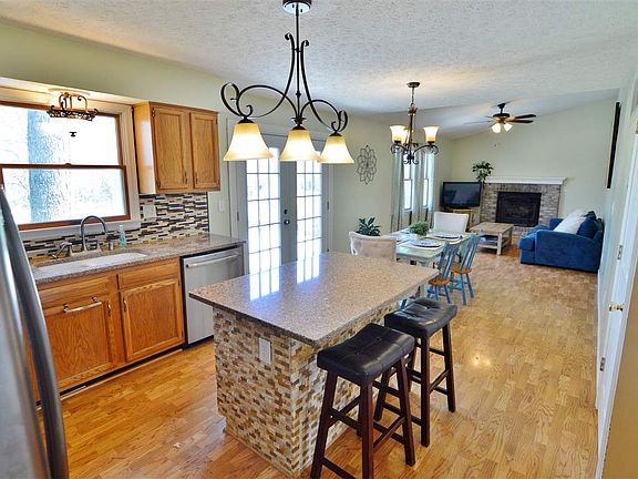 - Kitchen Features: Wood Cabinets, Ceramic Tile, Island, Pantry, Marble/Granite/Slate, Walkout