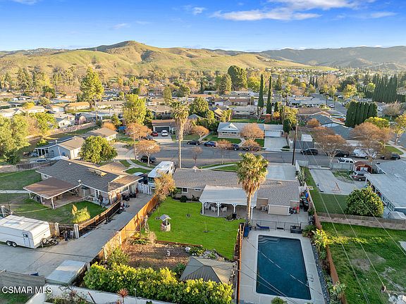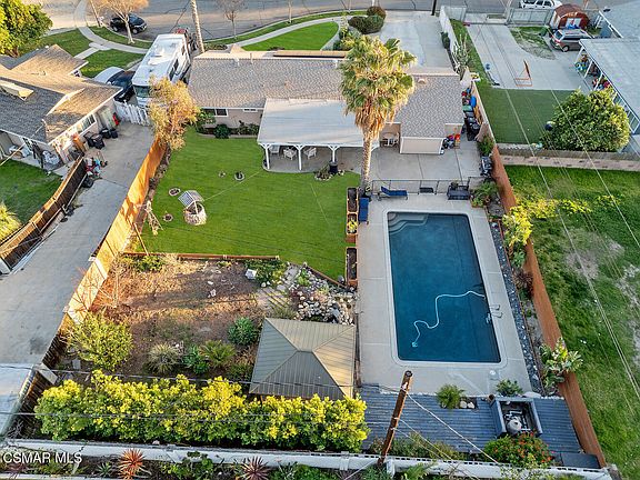 Welcome to this charming 3-bedroom, 2-bath ranch-style home, perfectly situated on a peaceful cul-de-sac in Simi Valley! Nestled on an expansive 12,632 sq ft lot, this property is an entertainer's dream with a fenced-in saltwater pool featuring Pebble Tec, covered patio, a tranquil pond, and a delightful gazebo—ideal for relaxing or hosting gatherings. The backyard is a true oasis, boasting a variety of fruit trees, including lemon, orange, peach, apple, avocado, mango, and plum trees, raised garden beds, offering both beauty and fresh produce right at your fingertips. Inside, you'll find new vinyl plank flooring throughout most of the home, creating a modern and cohesive feel. The light and bright kitchen is open to the dining area, is perfect for hosting gatherings or enjoying family meals.