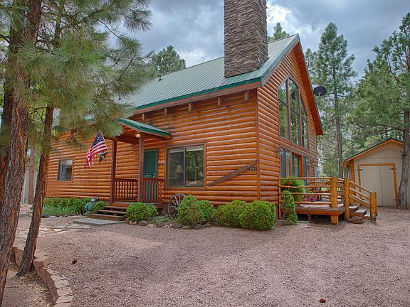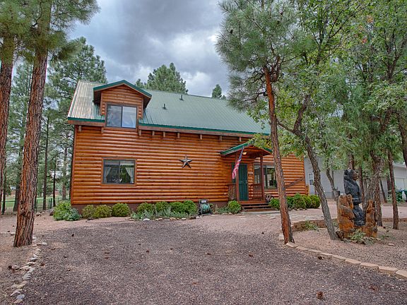 LOCATION-LOCATION-LOCATION! This RARE gem has it all! Fairway lot, no HOA, log sided cabin, fenced, bring your boat & RV and enjoy the cool pines living in the sought after area of Show Low Golf & C. C. Estates. Cabin view is on the 3rd green of the beautiful Bison Golf & C.ountry Club. Stunning floor to ceiling stone fireplace and log carved mantel. 3BR, 2BA, 1777 sq. ft., .26 aces. Large loft area for recreation separate Master Suite with en-suite bath. Two spacious additional bedrooms and bath downstairs. Covered decks, patio, totally fenced rear yard facing the 3rd green. Utility shed with golf cart storage port. VRBO qualified, partially furnished. No showings until Sept. 4th at 10:30AM. Bring your qualified buyers to see this gem!