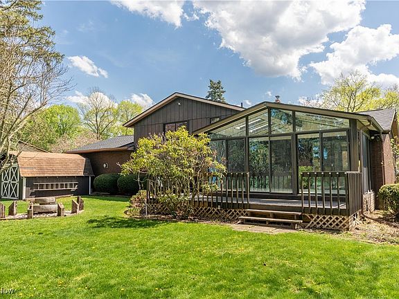 Charming 4-Level Split on a Spacious .72-Acre Lot! This delightful home offers over 1,800 sq ft of bright and versatile living space, brimming with potential and ready for your personal touch. Step into the welcoming great room, filled with natural light from a large picture window and enhanced by an open floor plan perfect for everyday living and entertaining. The eat-in kitchen features ample cabinetry, a classic white tile backsplash, built-in shelving, a breakfast bar, and a cozy dining area with sliding glass doors leading to the enclosed sunroom. You'll love spending time in the sunroom, which boasts vaulted ceilings, skylights, and multiple sliding glass doors that open to a wraparound deck ideal for enjoying peaceful views and warm summer evenings in the spacious backyard. The lower level offers a cozy family room with a stunning floor-to-ceiling stone wood-burning fireplace and live-edge stone shelving. Also on this level is a convenient mudroom/laundry room with garage access, plus a full bath with a walk-in shower. Upstairs, you'll find three bright bedrooms, including one with a charming faux brick accent wall. The full bathroom includes a double-sink vanity, a tub/shower combo, and a linen closet. The basement provides ample storage space to keep everything organized. Don’t miss this opportunity to make this house into your dream home. Schedule your private showing today!