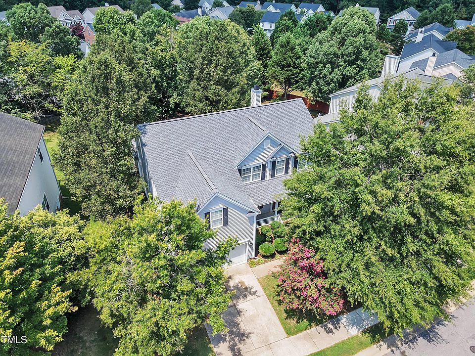 This lovely updated move in ready 5-bedroom 3-bath Traditional home is a special find in the Mckinley Mill development, within the highly desirable North Raleigh area. From its large yard, located on a pleasant street bordered by sidewalks and greenery, the home is minutes to the shopping and dining options of Downtown Raleigh and Wake Forest. Picturesque views on the breezy screened porch of the private backyard await you after an easy commute home. Fenced in the rear, the yard offers seclusion and plenty of space for leisure. Facing the tree-lined street, a covered porch is a nice spot for relaxing with beverages, whether morning coffee or twilight nightcap. Inside, the home offers a bounty of remarkable advantages. Fresh paint throughout and brand new carpet. Oak hardwood flooring provides a legacy feel in the entryway, beneath a rare combination of fashionable and natural lighting. Your inner stylist will find an expansive blank slate in the sun washed open floor plan. Flowing like a breeze into the living room and Screened porch, the airy kitchen has been beautifully updated for luxury and convenience. A delicious concoction of granite counters, complemented by a fashionable backsplash of ceramic tiles, the room is in the popular U-shape configuration, maximizing workspace and flexibility. Measuring and dicing are somehow more fun beneath stylish lighting with the large kitchen island. The newly updated ensuite primary bedroom is well-designed and tranquil. In addition to the convenience of the private bathroom (separate tub), you will find plenty of walk-in closet space to let your wardrobe breathe with lots of Storage space. The other 4 unique bedrooms offer the luxury of private space. A driveway with ample accommodation for two vehicles leads to an attached two-car garage that is available for its original purpose, or you can get creative by treating it as additional flex space. Walk to the community pool. * It's a great idea to make a competitive offer on this one!