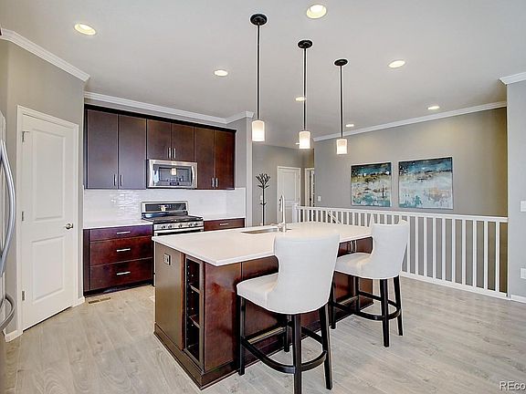 MOUNTAIN VIEWS!! Gorgeous single-family, ranch-style home in quiet Dacono neighborhood! Your future home offers 3 Bedrooms and 2 Bathrooms. Main level has spacious open layout; Kitchen features Quartz countertops with beautiful glass tile backsplash, stainless-steel appliances, and center island with additional breakfast bar seating x3, tons of counter space and storage. The dining area connects kitchen to Living Room with cozy gas fireplace, and crown molding throughout. Master Bedroom features walk-in closet, and private 5-piece bathroom. Custom plantation blinds on all windows through out the house. Updated cabinets and countertops in the bathrooms. Unfinished basement is full footprint of main, and is ready for your personal touch! Ring doorbell, digital Schlage deadbolt, and myQ garage door opener all included. Relax on the covered back deck with Mountain Views, and backs to open space! Call now for your personal showing! *All offers to be in by 9 A.M. on Monday, October 5th. Seller will make a decision shortly thereafter*