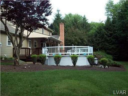 NEW PRICE!! AWESOME tree lined and beautifully landscaped lot in cul-de-sac location. Lots of room in this classic center hall colonial w/four or five bedrooms and three full baths. Warm and inviting family room w/fireplace and access to 24 x 11 covered patio plus large deck area w/above-ground pool. First floor bedroom w/adj. full bath would be ideal for an office or extended living quarters. Super convenient area with easy access to I78/309. If you are looking for an ideal location - this is it! 06/25/12