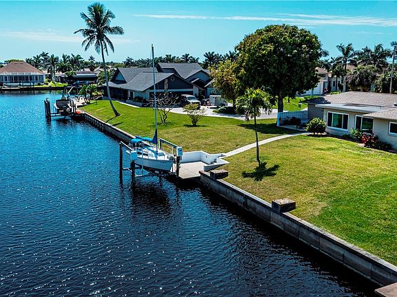 Direct access to the river & onto the Gulf of Mexico. Enjoy your kitchen & breakfast room, a sunny, light, bright & airy room every morning.. Generous kitchen features island, some updated appliances, plenty of cabinets & granite counter space. Outstanding view down the canal from the kitchen. Located next to the cul-de-sac on a dead end street. Double garage w/overhead storage racks. Washer, dryer, & laundry tub are in the garage as well. Windows have been replaced & are hurricane rated. This is a flood zone with a base elevation of 8' per the city of Cape Coral. Large "Sweet" mango tree on S side provides lots of shade for the out side patio in the back. Large avocado tree in the front yard. Palaco Grande neighborhood has been one of the best for years. Convenient location close proximity to Publix, Walmart & Coralwood Mall. This one is a Gem.