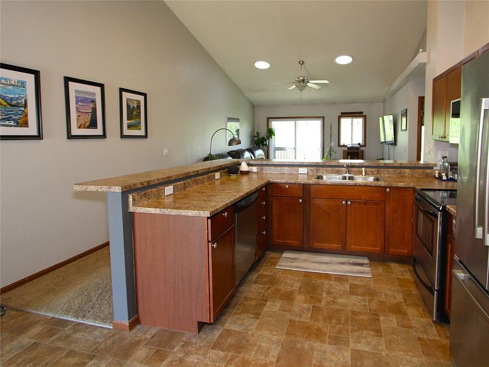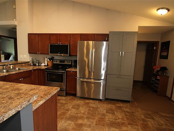 - Breakfast Bar, Kitchen/Dining Combo, Bath in Primary Bedroom, Main Level Primary, Vaulted Ceiling(s)