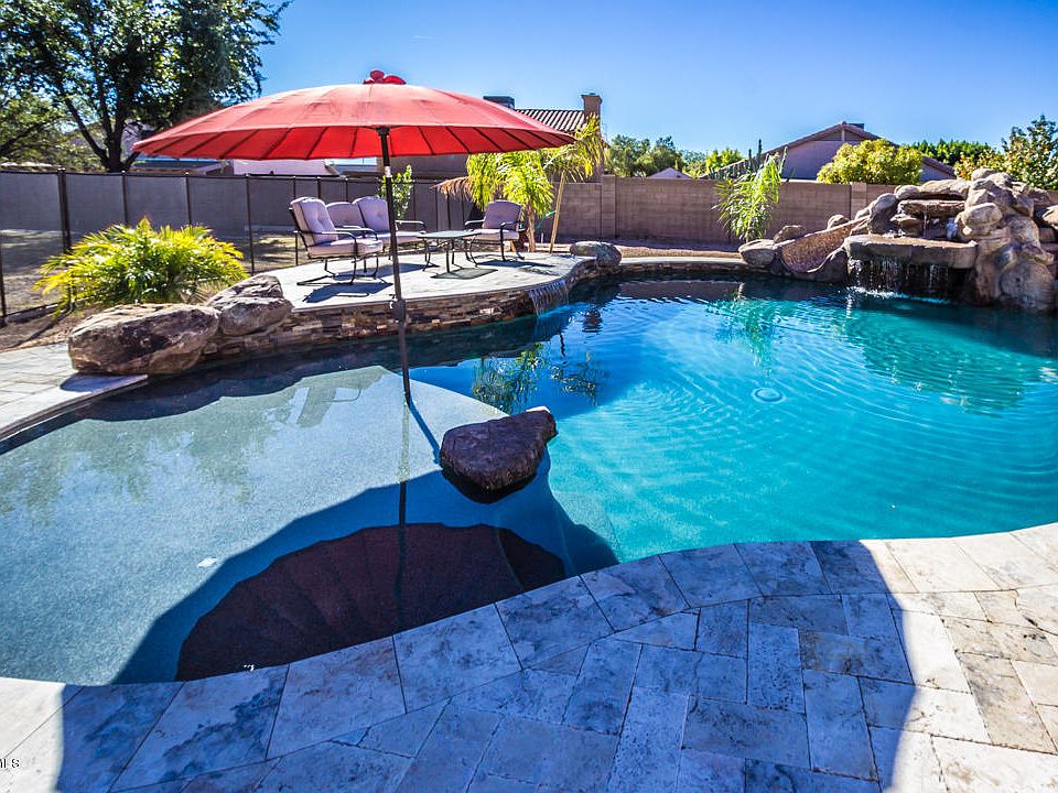 This home has it all and it will not last! Huge cul-de-sac lot with RV gate. $50,000 Pebble tec pool is less than 1 year old. Complete with travertine deck, rock water slide, and waterfall grotto. Huge patio overlooking lots of grass. Freshly painted inside and out. Inside you will find a pleasant, open feel with soaring vaulted ceilings. Great kitchen with island. Updated lighting throughout. Extra workspace and storage area in garage plus garage cabinets. These owners spared no expense on your new home. All of this in the perfect location. Walking distance from Wet & Wild waterpark and Library. Minutes from the freeway and Norterra. Schedule a showing today!