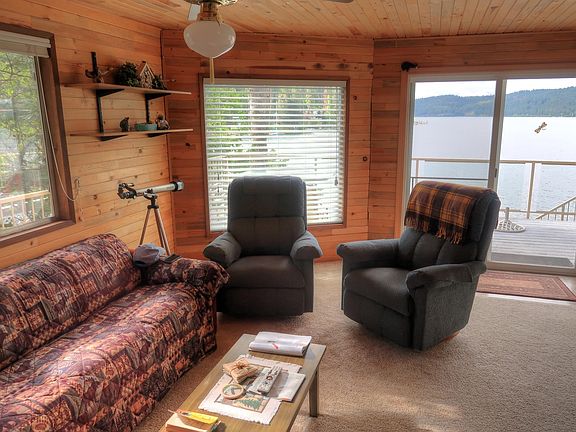 Lake Coeur d'Alene, Cottonwood Bay, 50' frontage 2 Bedroom, 1 bath, cottage. Super cute, view off the charts, afternoon sunshine, private setting, great condition, boat dock, spring water system and lake water system. Good parking, room for RV.
