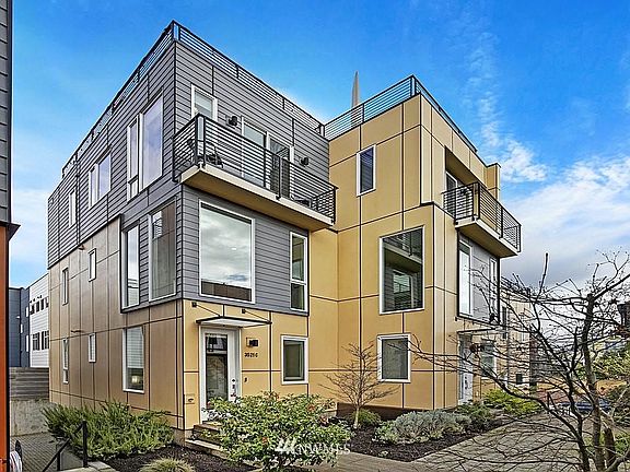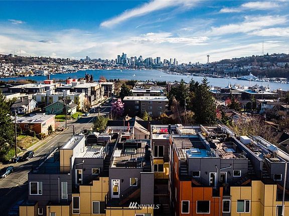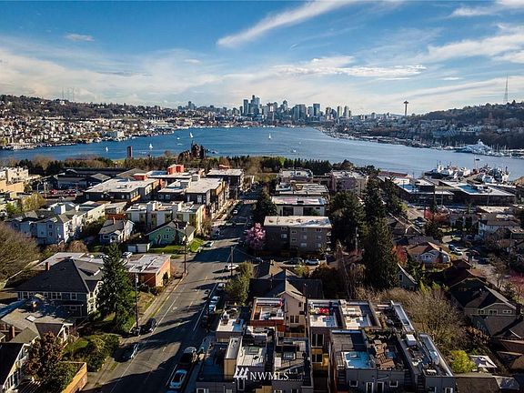 Take in year-round stunning panoramas of downtown, Lake Union, Mt. Rainier & beyond right from your own living room! This delightfully modern, 5-star Built Green townhome has it all: a light & airy open layout, chef's kitchen complete w/stainless appliances, gas cooking, quartz counters & chic tile backsplash, efficient radiant heating, hardwood floors & ample storage space. 2 spacious bedrooms, each with their own ensuite bathrooms + room for an office! Relax on the rooftop deck while taking in unobstructed views - never gets old! The off-street parking makes it easy to leave the car at home & jaunt to nearby Gasworks Park, Fremont fun, or great eats in Wallingford. Head to UW, SLU or downtown easily w/nearby transit & I-5 access. No HOA!