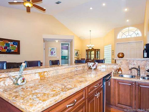 5 BEDROOM (OFFICE AS 5TH)** 2016 ROOF*** LIVING ROOM CUSTOM SPORTS BAR W/ TRIPLE FLAT SCREEN TV ENTERTAINMENT. THE KITCHEN UPGR ** CUSTOM GRANITE, WOOD CABINETS, TURN-STYLE PANTRY, ROLL-OUT DRAWERS, TRASH COMPACTOR, LG SINK, BREAKFAST AREA AND KITCHEN COUNTER OPEN SERVING TO THE FAMILY ROOM. MASTER BATH WAS REMODELED -MARBLE, SUNKEN JACUZZI TUB, AND OVER-SIZED SHOWER. THE FORMAL AREAS TILED FLOORS NEWLY RESURFACED. DEN/OFFICE NEAR THE MASTER SUITE OFFERS MASTERFULLY CRAFTED CUSTOM BUILT-IN DESK WALL UNIT.