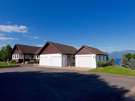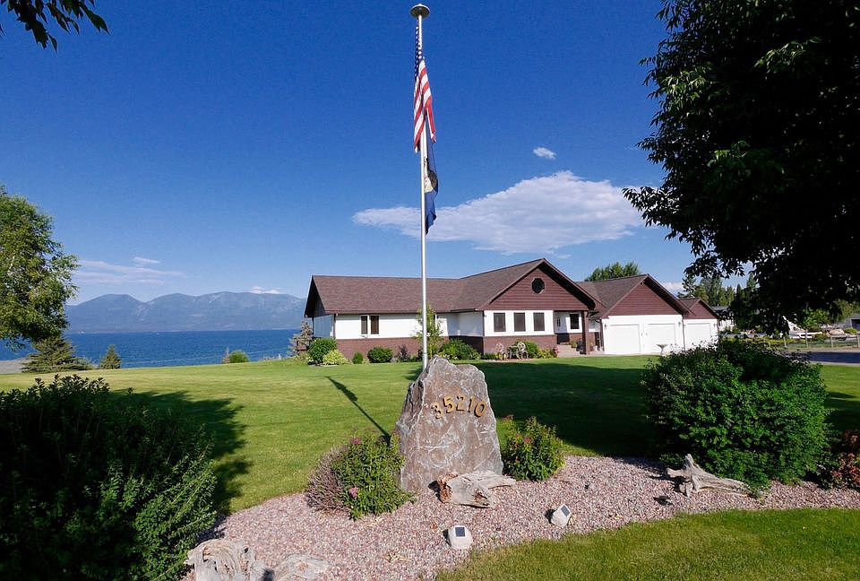 Single leveling living in this gorgeous home that looks out over the South end of Flathead Lake, the views from the massive front decks are incredible! This house can be purchased fully furnished for additional cost, call listing agent to discuss. The master bedroom suite is large with a terrace door leading out to the deck. The kitchen has a breakfast nook and comfortable sitting bar for entertaining. There is a formal dining room as well 2 living rooms with high ceilings and lots of windows, one looks out over the lake while the other takes in the views of Rocky Point. From one of the living rooms you walk out to the front deck that has two levels with fire pits and room for your dinner parties.