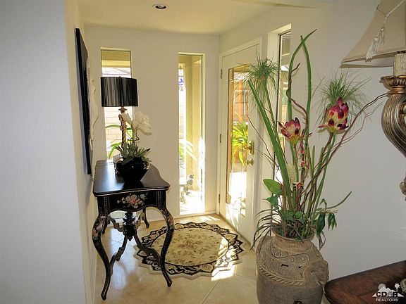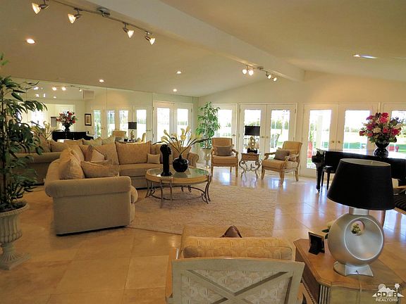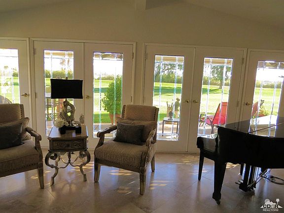 Follow the path through the lovely garden and pergola leading to the glass door entrance. Once inside you are in another world. Floors are 24 inch marble tile. Ceilings are smooth and with recessed lighting. Glass windowed doors are featured throughout the home and blend tastefully with the mirrored wall in the great room. To the east the doors provide an amazing golf course view with the mountains in the distance. This 2 bedroom, 2 bath home has a large galley style kitchen, with white cabinets, white ceramic tile counters and loads of storage space, which also contain components for a built in sound system. The home has recently been repainted continuing the beautiful style throughout. The large attached garage has a separate entrance and golf cart door. This immaculate home is located in Ivey Ranch CC & GC, a gated, senior community of mfg. homes with a 9 hole, SCGA rated, Semi-private course, Driving Range, Pro-shop, Club house and The Ciao Room seasonal restaurant.