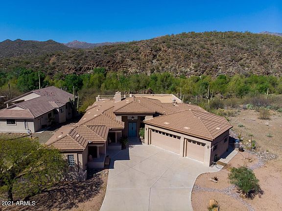 Phenomenal custom home nestled in the foothills of the Bradshaw Mountains! Welcome to a place where the boundless beauty of nature and the indulgent feeling of luxury living converge! This custom home features ample living space with additional attached guest quarters and a 3 car garage. One of the few homes in the area with river access to flowing water year round accessible from your own backyard! This exquisite natural paradise is equally welcoming to the wildlife in the surrounding area and endless hiking trails. Entertain yourself, family or guest's day or evening, with beautiful blue skies and mountains, or a spectacular show of stars as your backdrop with breathtaking sunsets that can be viewed from the 3 level patio including rooftop viewing deck. The home itself features