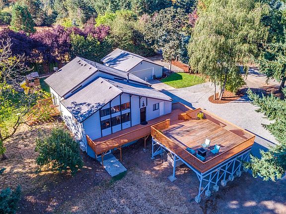 Gorgeous views & updates throughout! All new kitchen, granite counters & oak floors. Wall of windows overlooks the foothills & Mount St. Helens! New septic tank, new wood stove, new heating/cooling system, new paint, new decks, updated bathrooms! Main level master, lower level family room & potential 4th bedroom! Tons of storage. Oversized detached garage, chicken coop, 24x12 shop w/concrete floor. Fantastic Silverton schools too!