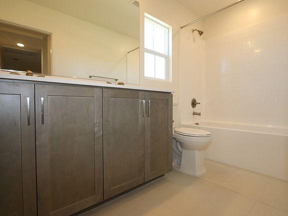 A full bathroom with dual sinks, providing ample space and convenience.