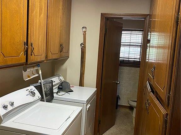 Location! Location! Location! Nice two bedroom two bath brick home Less than 1/2 mile from the Prague lake With a small shop and a horse barn!