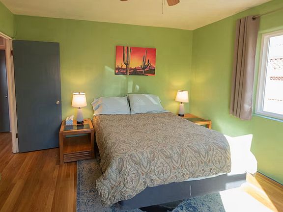 Colorful, two bedroom one bath apartment with hardwood floors, fenced in backyard, furnished with comfortable queen beds and all utilities included. We rent month-to-month. 1750 per month. The apartment is located near the university and Unm hospital. There is a coffee shop in the neighborhood and a local community center that features workshops, massage therapist, Acupuncture and more. We are pet friendly, but we do require a pet deposit.