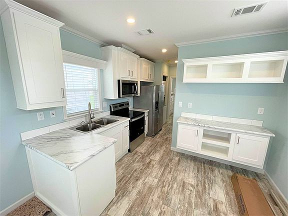 2021 Park Model one bedroom one bath for sale. Price includes driveway, carport, skirting and storage shed. This home has white cabinets, subway tile and beautiful flooring. It includes many upgrades like central a/c, soft close cabinets, whirlpool appliances, easy step-in shower and a covered front porch with a fan. It won't last long so, call today!