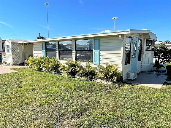 1 Bed, 1 Bath fully furnished on a corner lot. Huge Florida Room with newer flooring and 2 wall A/C. Main home is cozy and roomy with plenty of storage, two tip-outs, kitchen has gas stove. New roof A/C in the main home. Bedroom has plentiful closets and built-ins with another wall A/C. One Large storage shed and a small shed between the tip outs. Ready to move in! Fully Furnished