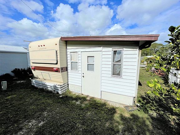One Bed, One Bath, fully furnished home with carpeted Florida Room with glass windows, screens and blinds and wall a/c. There is a separate room in back and extra storage room. Main home has tons of storage and built-ins with roof air. Flooring is carpet and vinyl. Galley kitchen with full size fridge and gas stove. Great cozy home for a great price. Won't last long!