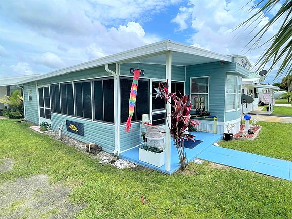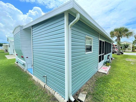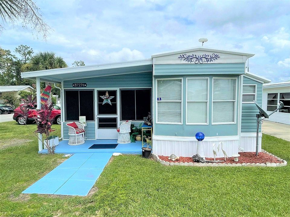 One Bed, One Bath furnished home. Florida Room with carpeted floor and storage room in back. A portable a/c in the Florida room to keep you cool on those hot days. Home is bright and cozy with lots of storage and built-ins. AMS roof w/ roof air in main home and a nice covered front patio. Washer and dryer hookups. Newer flooring in main home also. Located on a large corner lot.