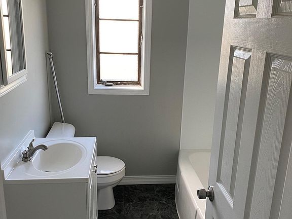 Renovated Unit! Large 2 bedroom, 1 bathroom bottom floor apartment for rent. New flooring throughout. New paint. Updated bathroom. Refrigerator and stove included. Coin operated washer and dryer in basement. Tenant pays electric and gas. Tenant parking in rear of building. One large portable air conditioner included for summer months. Qualified applicants must have positive residential history, make three times the rent, and have no prior evictions or housing related collections. No smoking. 12 month minimum lease. Tenant Pays: Electric and Gas