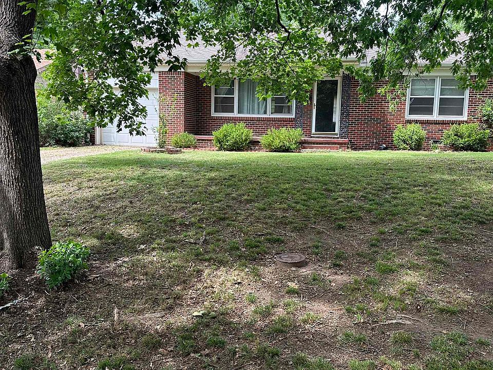 Nothing says home like a brick home with mature trees. This red brick home with red brick driveway is ready for you. The three bedrooms offer plenty of room for a family or for a couple who needs home offices. Large covered front porch is perfect to spend an afternoon watching the birds. Beautiful leaded glass front door leads to an oversized living room/dining room with a built-in hutch and coat closet. There's even a built-in linen closet in the hall. The fully applianced kitchen has room for a table. Nice bathroom plus an extra shower and sink in the laundry room. Laundry room even has a dog door for pet lovers. The back door from the laundry room leads to a +/-16x10 covered patio. And, the storage shed is oversized. This home will sell fast!