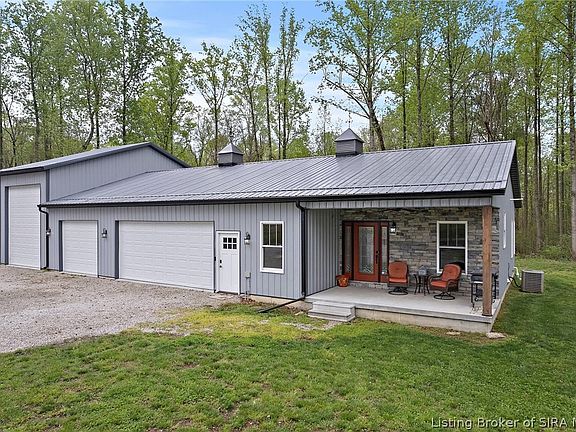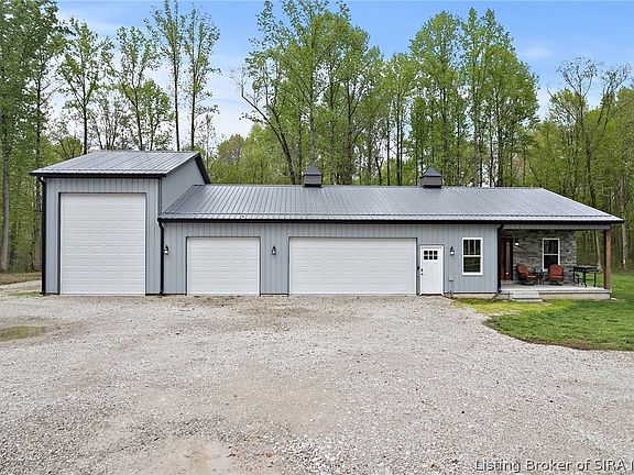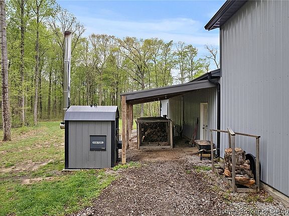Introducing a SHOWSTOPPER at 3522 E. Harrod Rd, Scottsburg, IN 47170! Built in 2018, this custom impeccably maintained POLE BARN features 3 bedrooms, 3 bathrooms, a FINISHED BASEMENT with a SAFE ROOM, a 4-CAR ATTACHED GARAGE with a mini-split for climate control, and a DETACHED 30x40 SHOP/OFFICE with a HALF BATH, lean-tos, and 2 mini-splits for additional climate control. RADIANT FLOOR HEAT throughout to add to the comfort! This property also features a $12,000 OUTDOOR WOOD BURNER to complement the electric heat. The Sellers thought of just about everything to make this a luxury custom-build down to the handrail that can be easily removed to the basement for furniture moving ease. The property is situated on 10 ACRES with trails for side-by-sides to be able to enjoy the full potential of this property including hunting. One of the Sellers' favorite features of this property is that it is LESS THAN ONE MILE AWAY FROM HARDY LAKE, STATE PARK. Whether you want to camp or take the boat out on the lake, you're only two minutes away from another luxury that this property has to offer! The Sellers are generously leaving behind a wealth of furniture including appliances, living room sets, certain TVs, a really nice bedroom set, shelving, and more. Don't miss this rare opportunity to step into your DREAM HOME with so many extras!