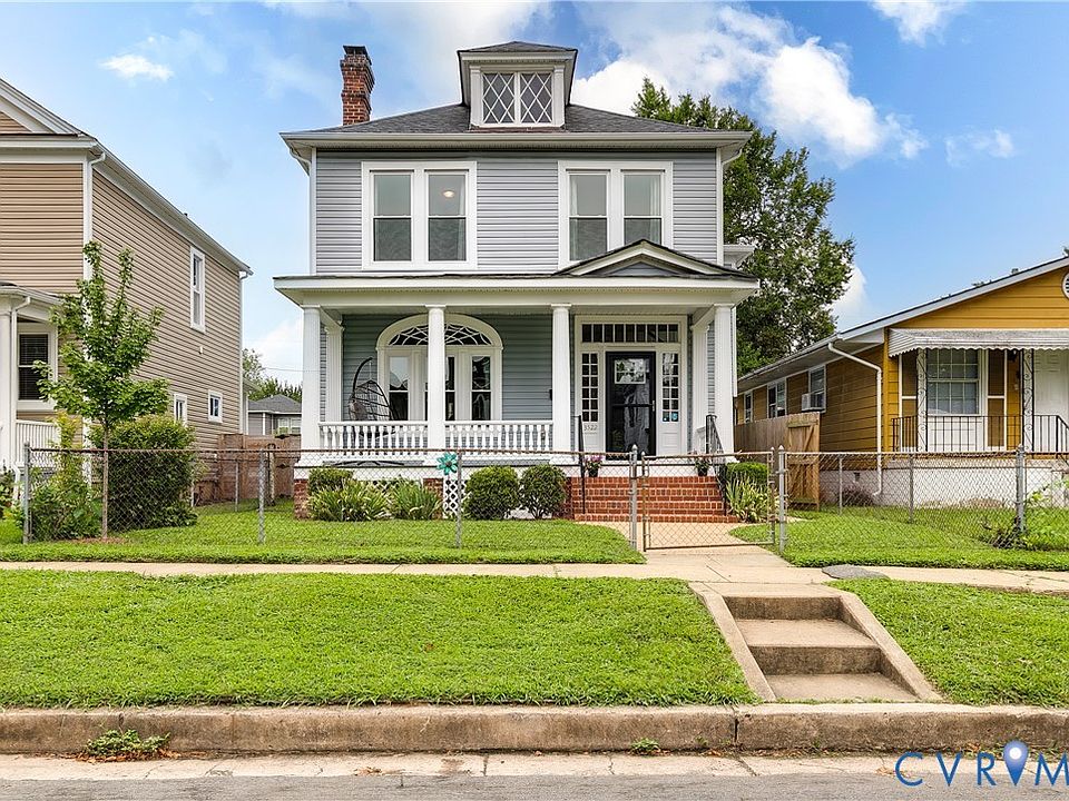 Classic charm meets modern updates in this beautifully restored home on Enslow Avenue. With striking curb appeal, an inviting front porch, and thoughtful upgrades throughout, this property perfectly blends historic character with contemporary comfort. Step inside to a bright foyer with tall ceilings, abundant natural light, and a graceful staircase that sets the tone for the home. The spacious living room features a statement fireplace with tile surround and crisp white mantle, framed by oversized windows—including a dramatic arched accent window—that flood the space with light. The renovated eat-in kitchen showcases sleek gray cabinetry, granite countertops, stainless steel appliances, and an open-concept design ideal for cooking and entertaining. Upstairs, the primary suite offers a decorative fireplace, private ensuite bathroom, and timeless character. Two additional bedrooms and a hall bath provide versatile space for family, guests, or a home office. Outside, enjoy morning coffee or evening relaxation on the two-story porch, while the fenced yard offers privacy and space for gardening or play. Situated in Richmond’s sought-after Northside, this home provides easy access to local shops, restaurants, and parks, with just a short drive to downtown and major highways. Don’t miss your chance to own this one-of-a-kind property—schedule your showing today!