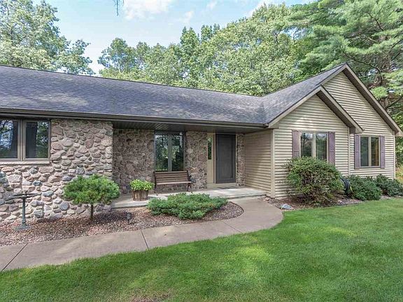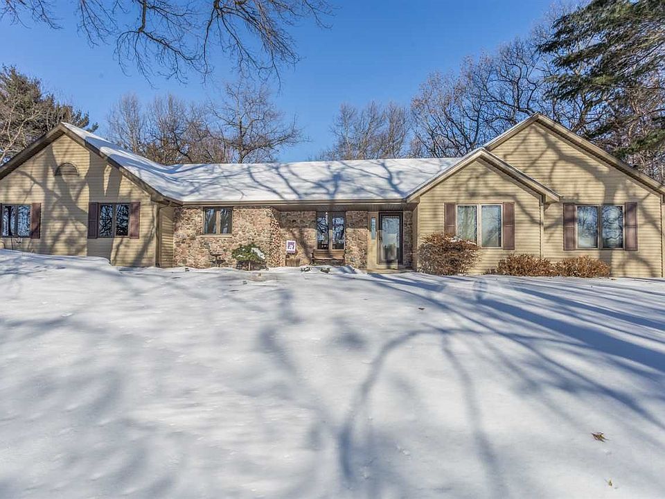 Secluded, well cared for, one owner walk out ranch situated on apx 1.57 acres of privacy. Home was custom built & offers 3 bedrooms & 3.5 bathrooms. Separate 1st floor laundry w/storage, full stone wall wood burning F/P & hardwood floors. Professionally finished lower w/extra rm, wet bar, full bath, family room & game room for pool table, ping pong or gaming! Updates per seller include roof 2009, furnace 2010, tile flooring 2012. Attached 3.5 car and detached 3.5 car, plenty of room for your toys! Fully applianced kitchen & washer/dryer. Enjoy sitting out on your deck & watching the wildlife.