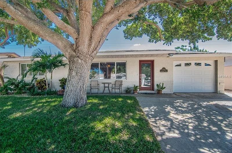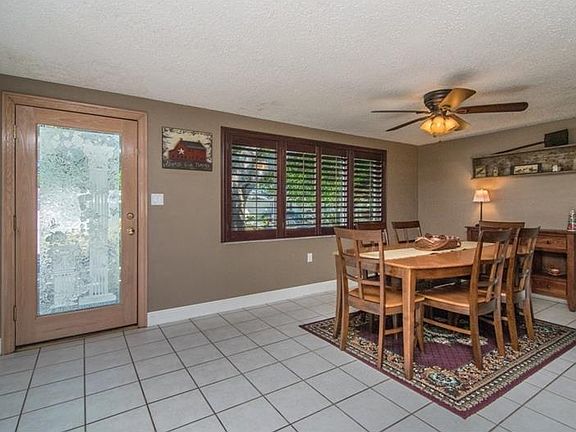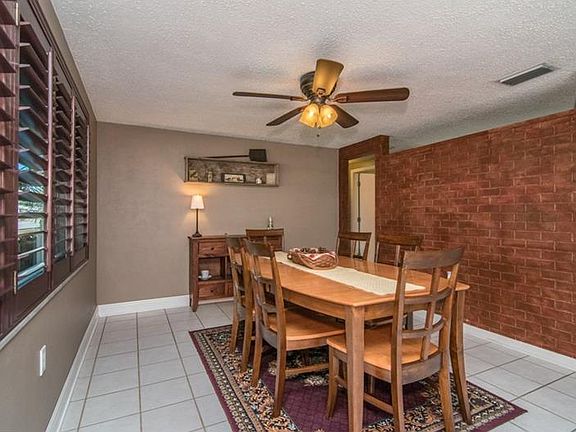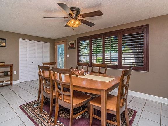 New Port Richey - Colonial Manor - This lovely 2 bedroom, 2 bath, 1 car garage 1600 sq ft home is centrally located close to shopping, restaurants, and grocery stores. Enter through the beautiful etched glass front door to the foyer and large dining room. The dining room has a wall of windows complete with plantation shutters overlooking the serene yard as well as a brick accent wall. The light & bright kitchen has tile floors, lots of cabinets, a breakfast bar, and an eating nook. The master bedroom has neutral carpet, a cedar lined closet with mirror doors, and a ceiling fan. The second bedroom has neutral carpet, a closet with mirror doors, and a ceiling fan. The bedrooms share an updated hall bath. The enormous family room boasts a large stone fireplace, cathedral ceilings, and bamboo flooring perfect for entertaining or family gatherings. French doors lead to a large screened patio overlooking the back yard with tropical foliage, a small pond as well as a handy utility shed. There is an inside utility room with cabinets and a sink as well as a sizeable closet in the foyer. Use the cozy office space as the organizational center of the home. A freshly painted exterior, double paned windows, an extended parking pad and newly sodded yard complete the package. The garage door, A/C, and water heater were replaced in 2012. Home not located in Flood Zone. Call now for your private showing before this gem is gone! You will love what you see!