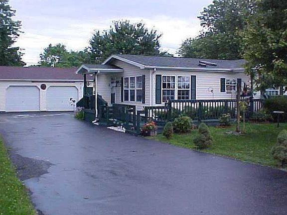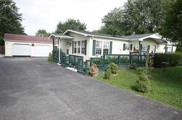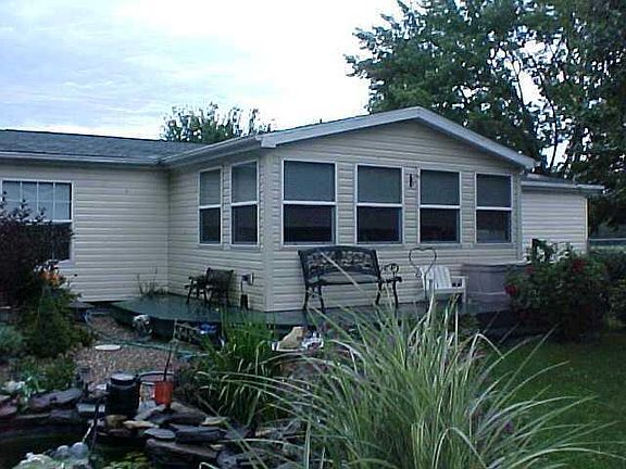 Lots of home for the money! 1648 SF, 3BR, 2BA, vaulted ceilings, gas furnace, C/A, Newer carpet & laminate flooring, ceiling fans, throughout, office room-addition added, 2.5 Car detached garage, wrap around deck, extensive landscaping w/water pond, fenced back yard.