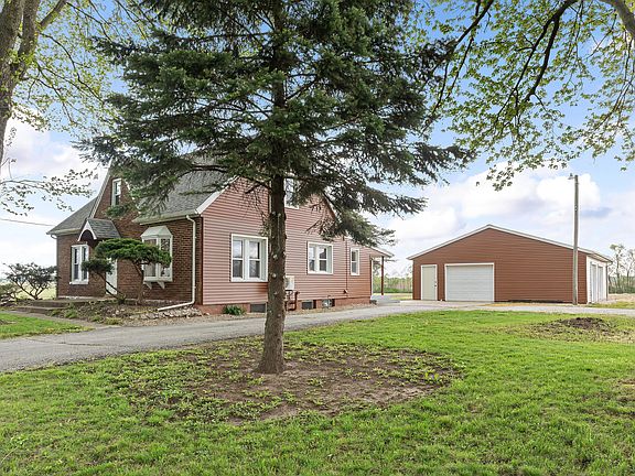Panoramic views of the beautiful countryside in this beautifully renovated 4 Bed, 3 Bath farmhouse on over 2 acres. Great opportunity to have your very own hobby farm. The house has been tastefully updated from top to bottom in 2023 with loads of important improvements like septic system, A/C, updated electric and plumbing, and so much more. Finished laundry/mud room when entering from the back porch for convenience. Basement is solid and dry with interior and exterior access and 3 cellars for all your storage and canning needs! Main level features tall ceilings in the living room, office/formal dining room with original French doors, and den for extra living. The entire upper level has been transformed into a dream bedroom with ensuite 3/4 bath and plenty of closet space. In addition to the amazing views on the property you have a 3-car garage and large pole barn!