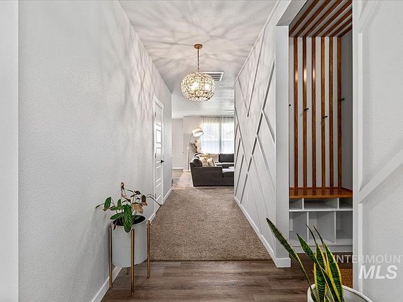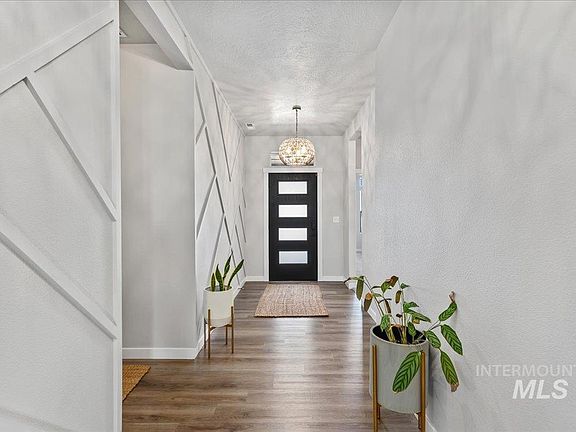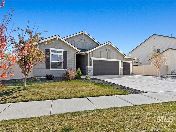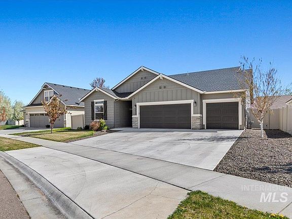 Welcome to this beautifully maintained 4-bedroom, 2-bathroom single-level home in a great South Meridian location! This well-designed home offers a 3-car garage, large east facing backyard, and an oversized side yard—perfect for extra storage or play. Inside, enjoy designed accent walls, black hardware, soft-close cabinets, and a spacious kitchen with gas range/oven, walk-in pantry, large island, and tons of cabinet and counter space. One of the bedrooms is oversized and could double as a bonus room or office. The open layout is filled with natural light and perfect for everyday living or entertaining. Step outside to the covered back patio and enjoy your private outdoor space year-round. Hanging shelfs in the garage stays for extra storage. Conveniently located near shopping, dining, schools, and freeway access.