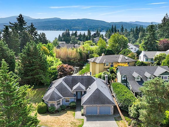 Welcome to this distinguished single-level home nestled in the desirable Silver Beach neighborhood featuring 3 spacious bedrooms and 2 well-appointed bathrooms. Relish the abundant sunshine from the south-facing exposure or take in the breathtaking views from the expansive deck. The interior showcases a blend of laminate and carpeted flooring, complemented by a living room with high vaulted ceilings and a family room featuring a gas insert fireplace. The kitchen is a culinary delight, equipped with a peninsula bar, newer appliances, and a charming breakfast nook. Additional highlights include a formal dining room, a laundry room + a 2-car garage. Situated near an extensive trail system, Lake Whatcom Beaches and Barkley Village amenities.