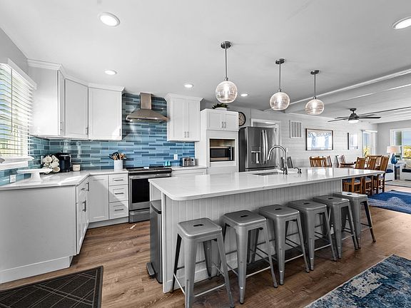 Discover coastal luxury in this stunning, fully remodeled home. Perched on a spacious semi-oceanfront lot with a private oceanfront parcel with a brand-new walkway, this property offers unobstructed ocean views from all levels and direct beach access. This home lives large and is stunning. Main level features an open concept living, dining, and kitchen area with ocean glimpses, four bedrooms and two bathrooms. Top level features another spacious living area with panoramic ocean views, primary ensuite that has ocean views and a beautiful new bathroom, laundry room, additional bedroom, and full bathroom. The remodeled expanded kitchen has GE Profile stainless steel appliances, sleek quartz countertops, white cabinetry, and stylish tile backsplash. The outdoor oasis includes expansive decks for sunbathing and relaxing, in-ground pool, and new hot tub. The remodel also included: LVP flooring throughout, new siding, windows, doors, decks, railings, fence, lighting, and more. There are 2 water heaters, and one was just replaced. Schedule an appointment to see the inside today.