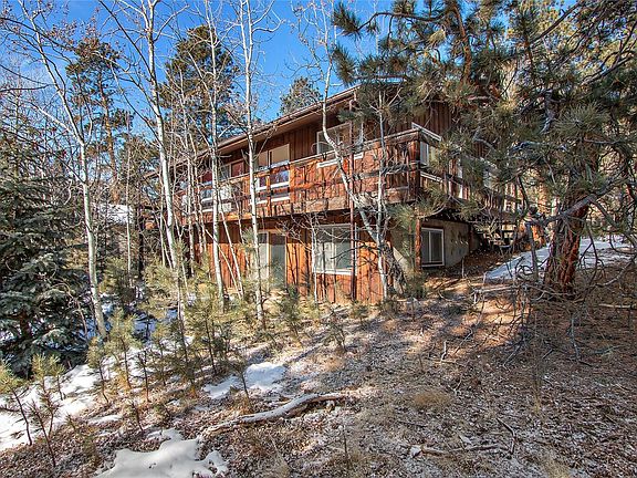 You won't believe your eyes when you step into this one of a kind time-capsule in Pine! While the d??cor has remained untouched, this home has been meticulously maintained and is in great condition. As you step into the living area, you'll notice the circular mid-century modern fireplace and wall of windows that bring in fantastic views of the surrounding aspens and wildlife. On the main level are 2 bedrooms, laundry room and a full bath. Take note of the vintage parquet floors in the bedroom- they look great! The lower level is outfitted with a 3rd bedroom, a study, a full bath and a wet bar where you could easily imagine going back in time. Situated on a flat, useable and sunny lot under the unwavering gaze of beautiful rock outcroppings, this home has all the assets that make for easy mountain living, including a flat driveway, oversized 3 car garage and attached workshop. Priced for you to update to your taste and make this wonderful home your own.