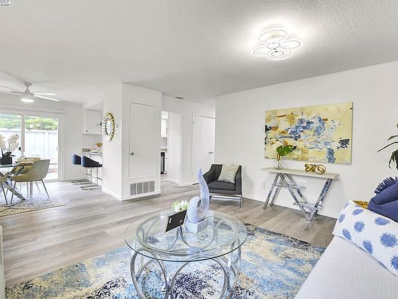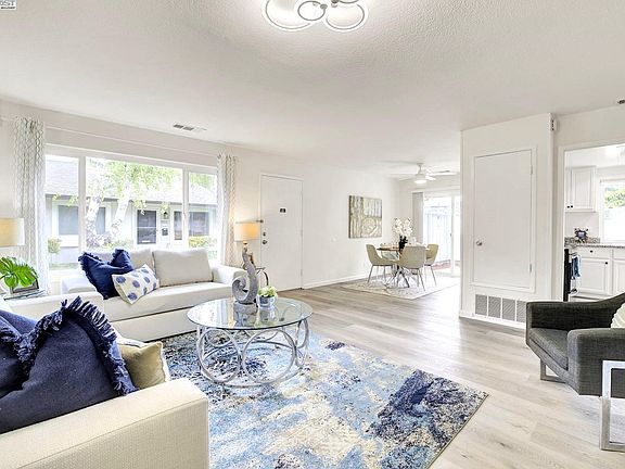 WEST-facing, single-story end-unit townhouse, ideally located in the desirable Jarvis Gardens community. Featuring 2 spacious bedrooms and 1.5 bathrooms, this home offers the perfect blend of style, comfort, and convenience across a thoughtfully designed floor plan. Step inside to discover an open and airy living space filled with natural light. The expansive family room flows seamlessly into the dining area, highlighted by sliding glass doors that lead to your private patio-ideal for morning coffee or evening relaxation. The updated eat-in kitchen boasts sleek granite countertops and ample cabinetry, making it a chef’s dream. Both bedrooms offer plush carpeting, with the primary suite featuring a beautifully renovated ensuite bathroom. A stylish half bath and a full-size washer & dryer tucked in a convenient laundry closet add even more functionality to the home. Residents enjoy access to amenities such as the community pool and well-maintained common areas. The home also includes 1 dedicated parking spot (covered). You’re just mins away from top shopping and dining destinations—including Sprouts, Home Depot, and the new dog park—and only minutes from Hwy 84 (Dumbarton Bridge) and I-880 for an easy commute.