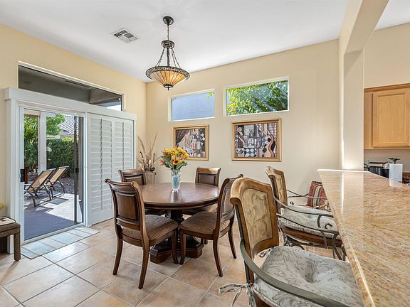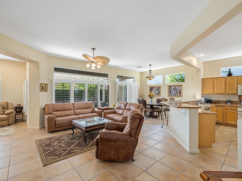 Located in most sought-after 55+ community in Coachella Valley. Pictures are worth 1000 words when considering this very Bright upgraded 3 bed, 3 bath Morocco floor plan with detached Casita on private lot. Situated close to all 3-very active clubhouses. Kitchen upgraded with granite slap counter tops. All walls tastefully painted in popular desert colors, Plantation shutters and custom color porcelain floor tile throughout. Master bedroom has double door entry with extended bay window facing sunny private backyard patio that has extended alumawood overhang with added path ways ...And best upgrade of all was the removal of unwanted kitchen walls that opened whole house to a very inclusive living environment!!! .... Must see to appreciate